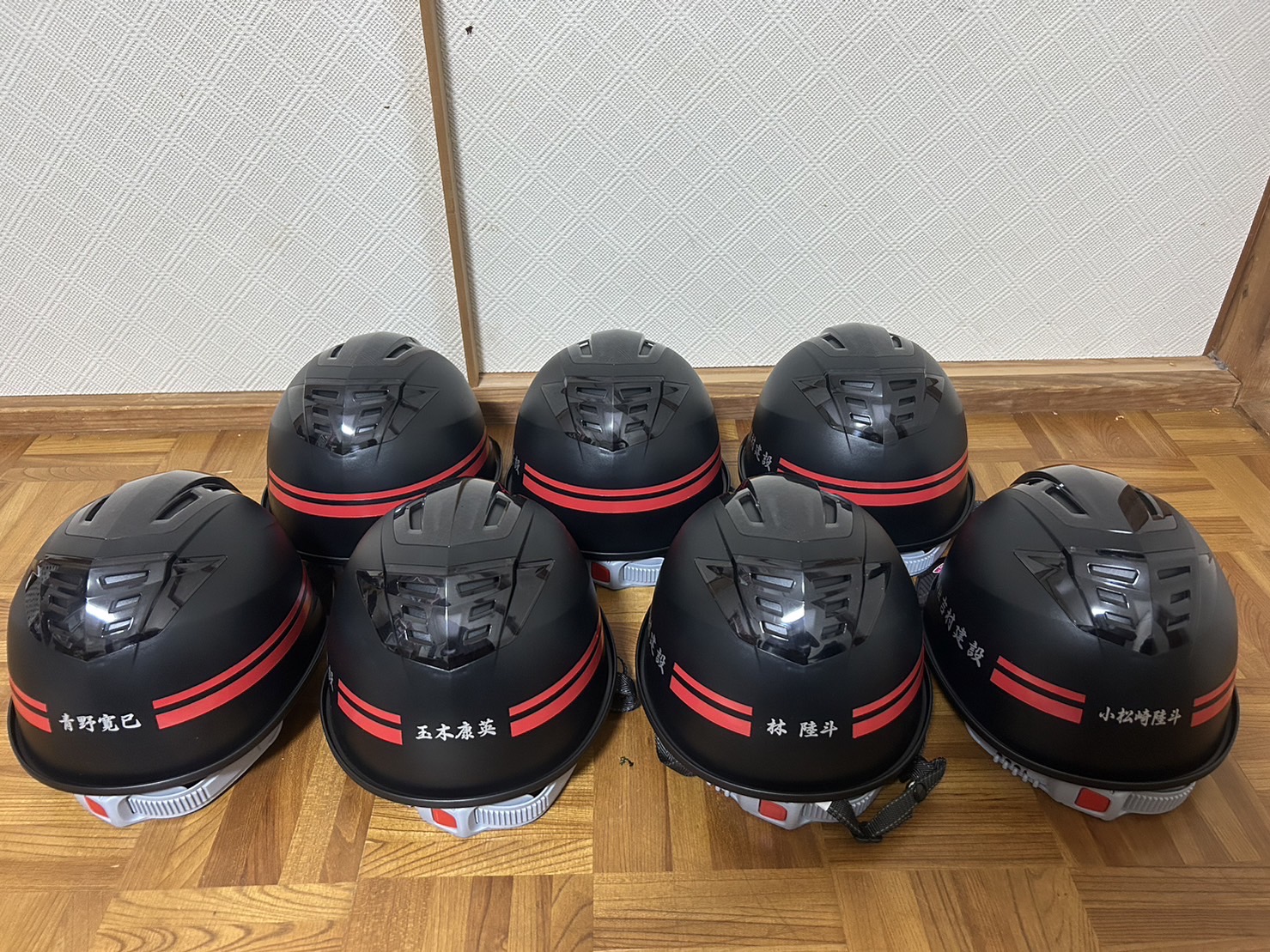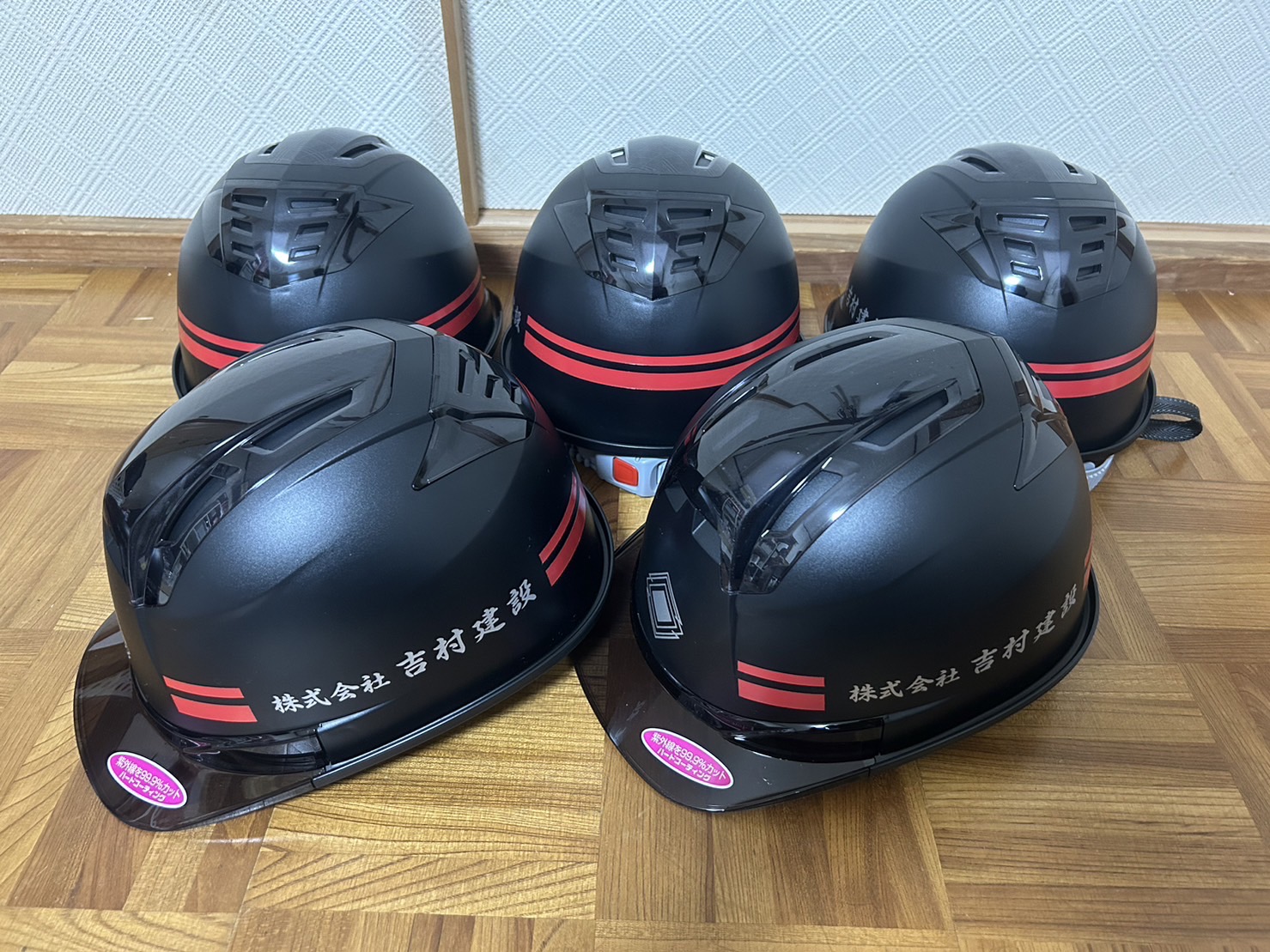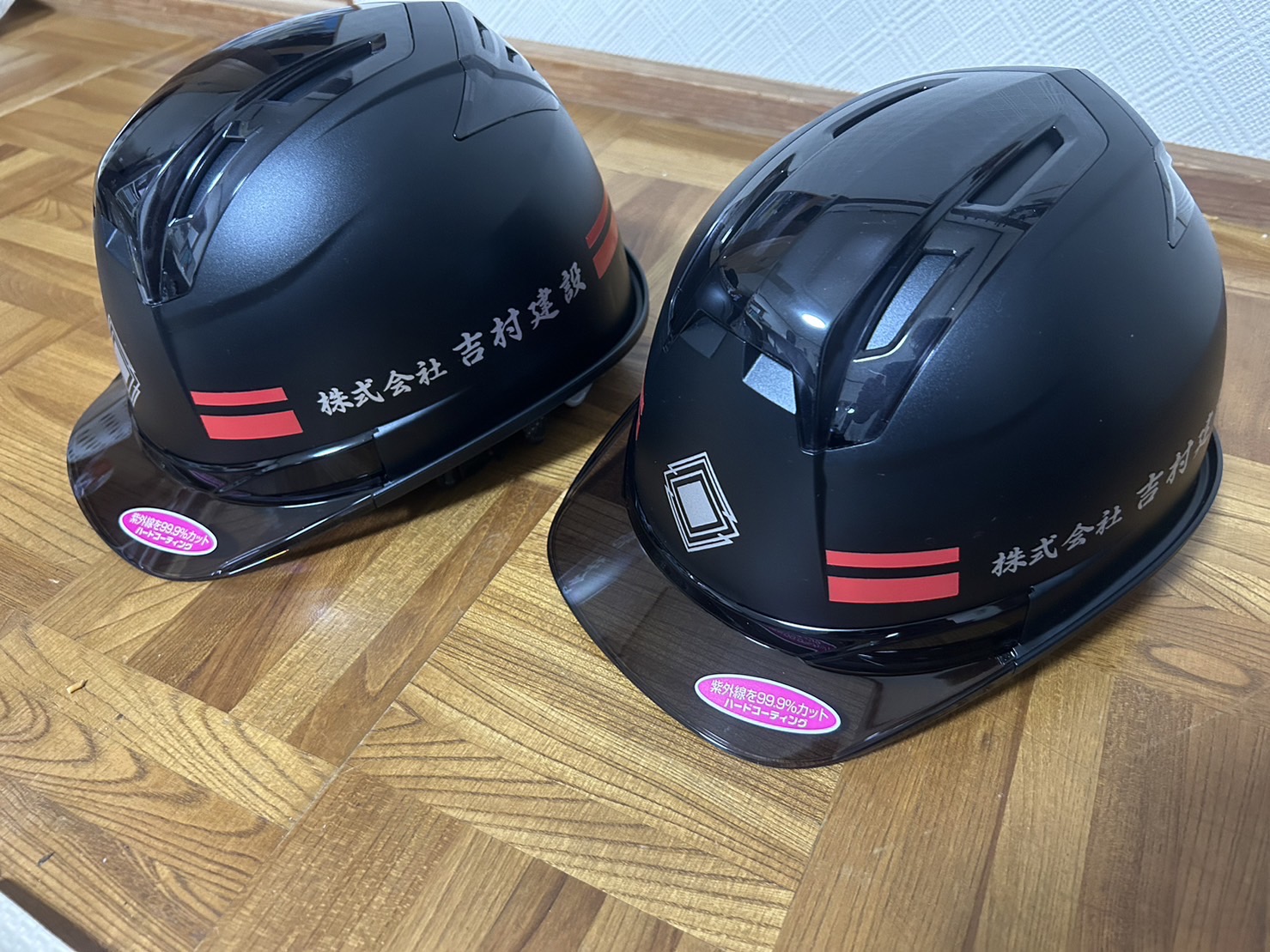 株式会社 吉村建設の会社用ヘルメットを従業員さんにデザイン考えてもらい作成させて頂きました!